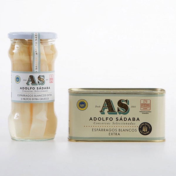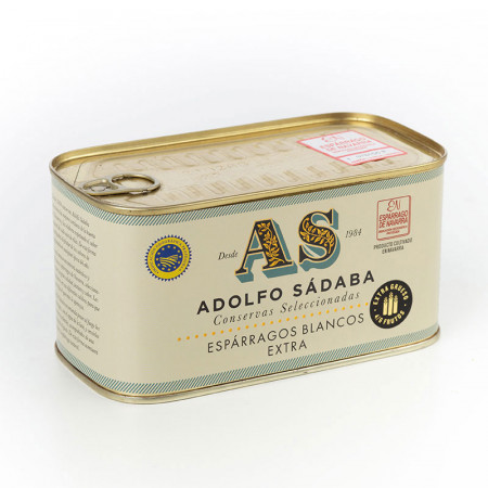 Espárragos blancos extra Denominación de Origen Navarra. Conservas seleccionadas Adolfo Sábada. Envase de 500 gramos.